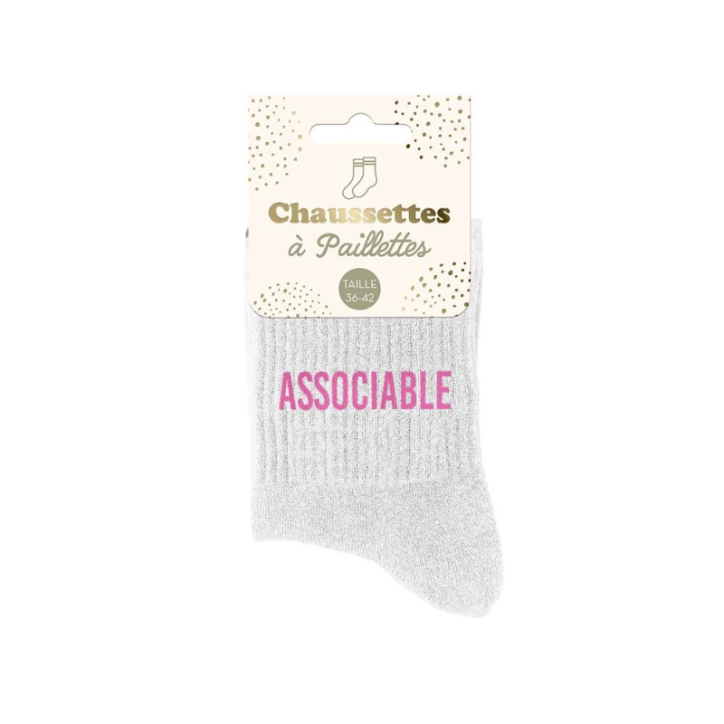 Ces chaussettes grises à paillettes avec la mention "associable" en fuchsia sont la touche finale indispensable pour un style qui pétille .