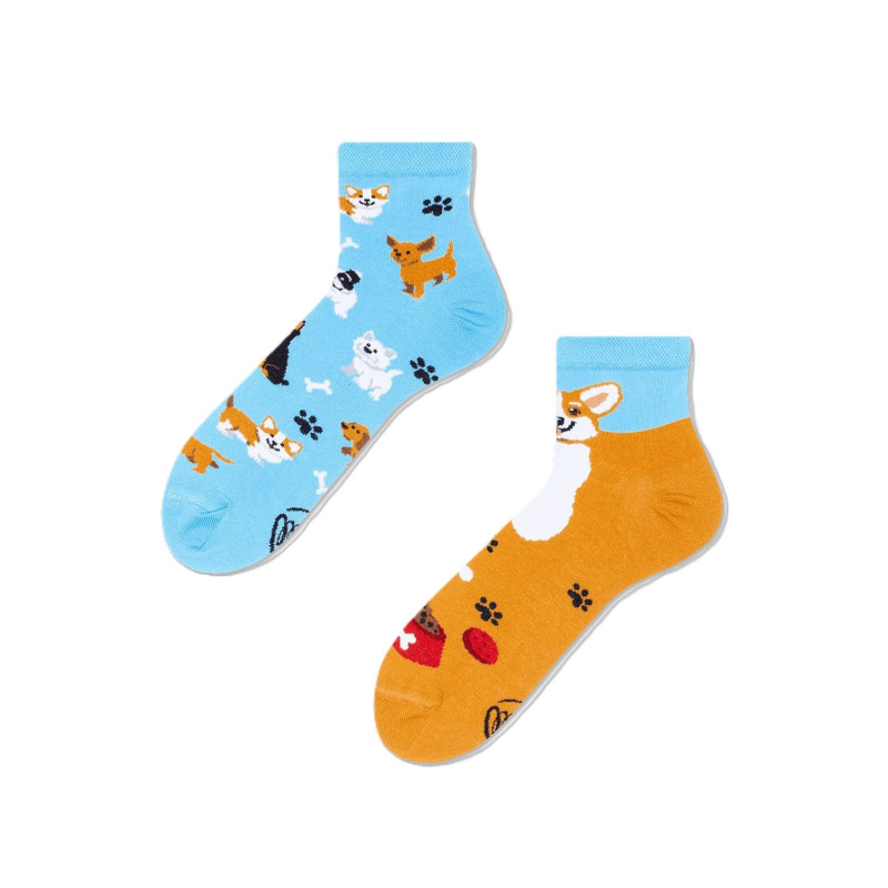 Des chaussettes avec des chiens dans une nouvelle version - pour vous et pour tous les amoureux de ces amis à quatre pattes ! Sur l'une d'entre elle, vous trouverez tout un troupeau d'animaux domestiques aboyant, et sur l'autre, un représentant royal du Welsh Corgi Pembroke, la race préférée de la souveraine de la cour d'Angleterre !