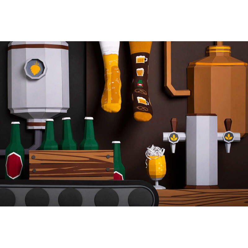 Que dois-je choisir aujourd'hui ? Lager, Bitter, Bock - faites le bon choix ! Lambic, Porter, Pils - allez boire un coup aujourd'hui ! Peu importe le type de boisson dorée que vous choisissez dans cette liste. Ce qui compte, c'est que nous avons créé de nouvelles chaussettes - à offrir ou à utiliser personnellement - avec de la bière et des bretzels. Des pintes à la main ! Les chaussettes dépareillées pour les amateurs de bière (et pas seulement !) sont un accessoire génial pour sortir au pub, pour une fête à la maison ou pour déguster cette boisson unique. Une mousse délicate et un style distinctif, voilà ce qu'est la bière artisanaL.