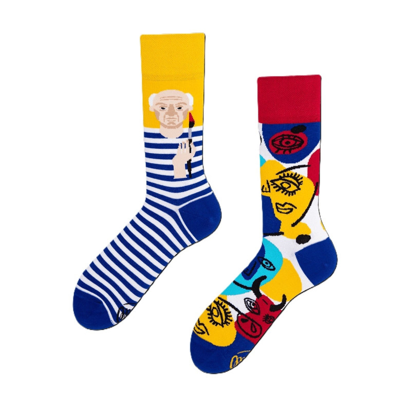 Pablo Picasso était un artiste qui, au sommet de son talent, a ouvert de nouvelles voies dans le domaine de l'art et les a suivies avec audace. C'est un personnage qui peut devenir une source d'inspiration pour tous, non seulement dans le domaine de la peinture, mais aussi en termes d'attitude artistique. Nous avons suivi ses traces et nous vous présentons aujourd'hui avec audace des chaussettes abstraites dépareillées à l'image du maître Picasso ! Laissez-vous inspirer, créez votre image à partir de rien et ressentez ce que l'on ressent lorsqu'une dose d'inspiration picturale vous accompagne chaque jour - et pas seulement au musée. De l'art pour les chaussettes !
