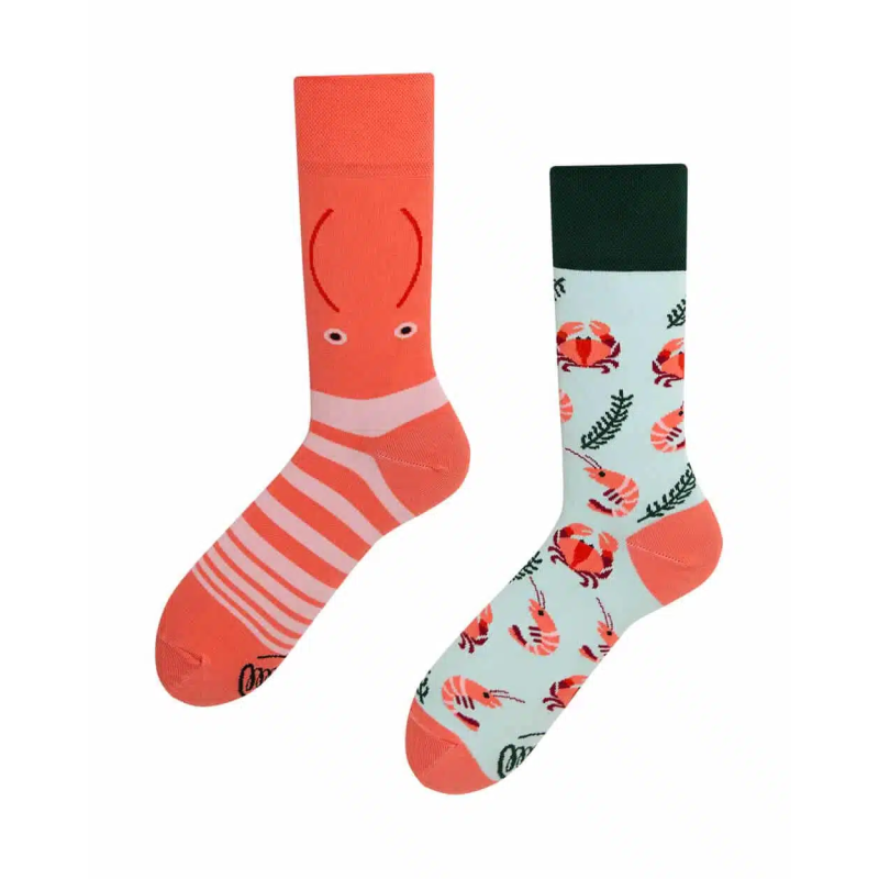 Écrevisses, crevettes, homards non assortis ! Frutti di mare est un modèle créé par amour pour les crustacés, en hommage à Forrest Gump (après tout, il a fait fortune grâce aux crevettes) et pour faire découvrir la terre à ces petites créatures - sur vos pieds, bien sûr ! Emmenez les écrevisses là où elles n'ont pas encore hiverné (les homards peuvent éventuellement s'y joindre), et aidez les crevettes à se cacher des langoustines. Ce modèle fera également office de chaussette cadeau pour les personnes qui n'ont pas d'idée de cadeau. Parce que, après tout... faute de poissons on mange des crevettes !