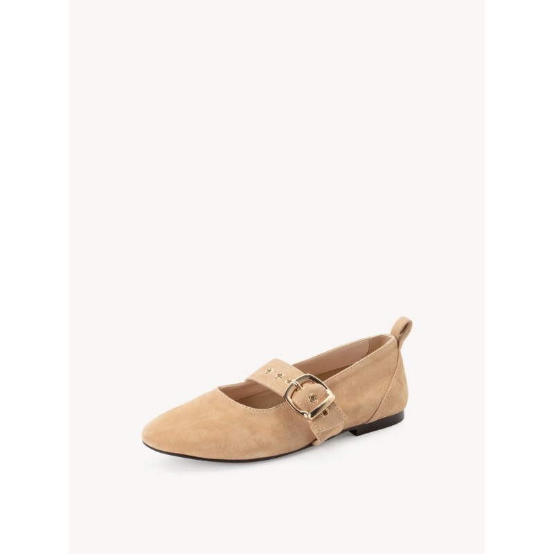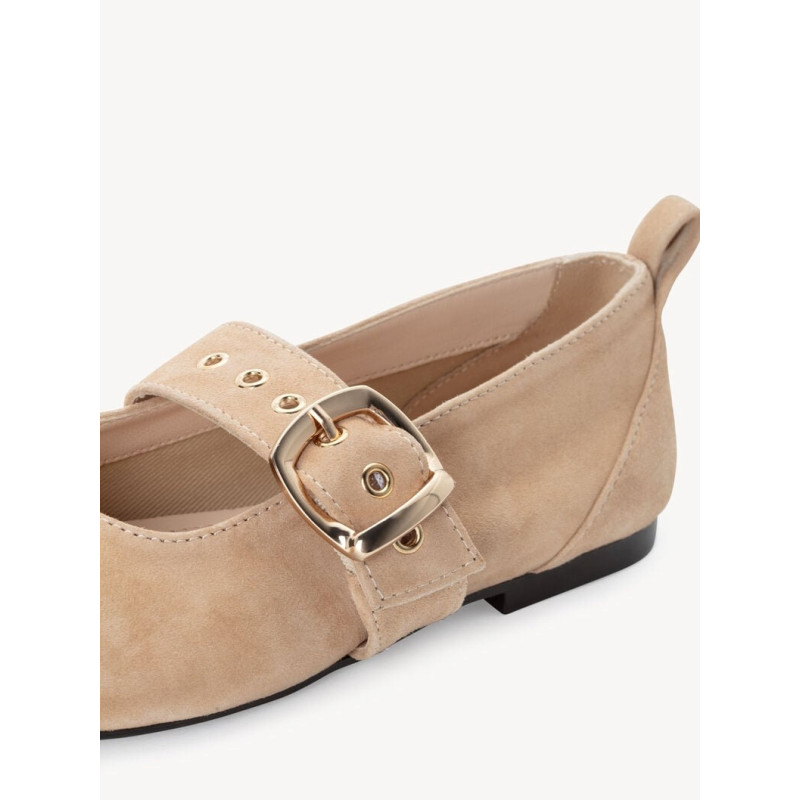 BALLERINE A BRIDE TENDANCE CUIR VELOURS BEIGE