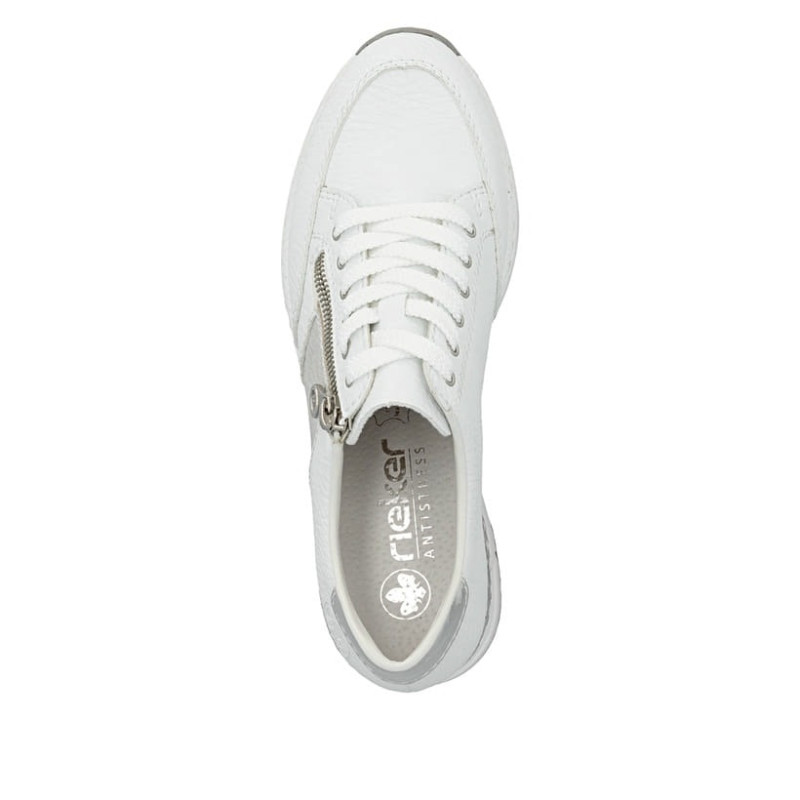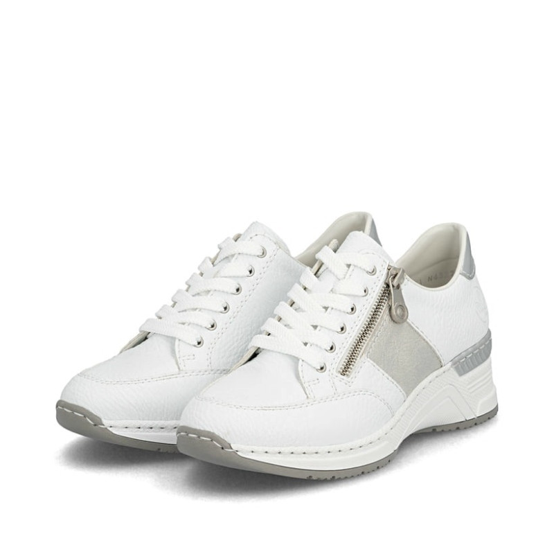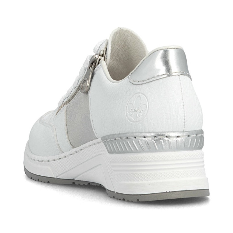 Passons maintenant à un modèle plus sportif. Ces baskets basses blanches Rieker N4322-80 pour femme sont un allié confortable.