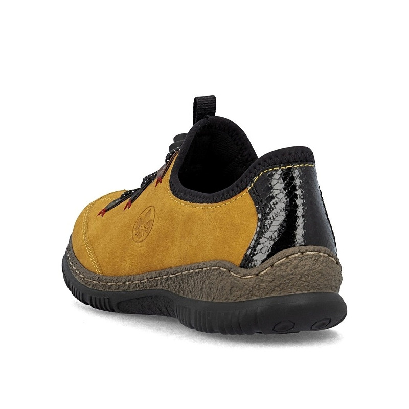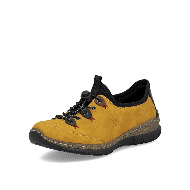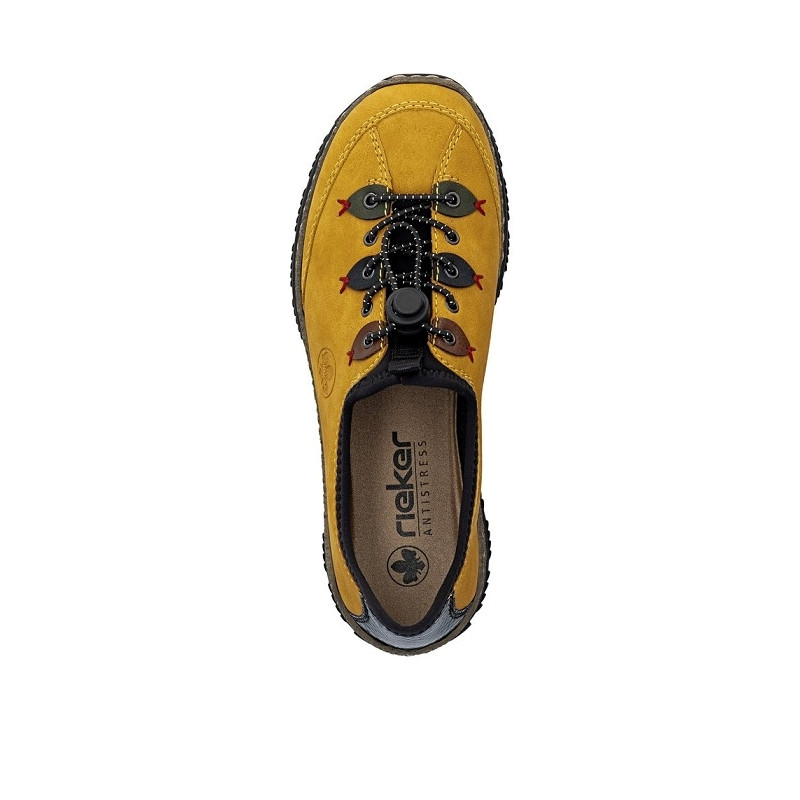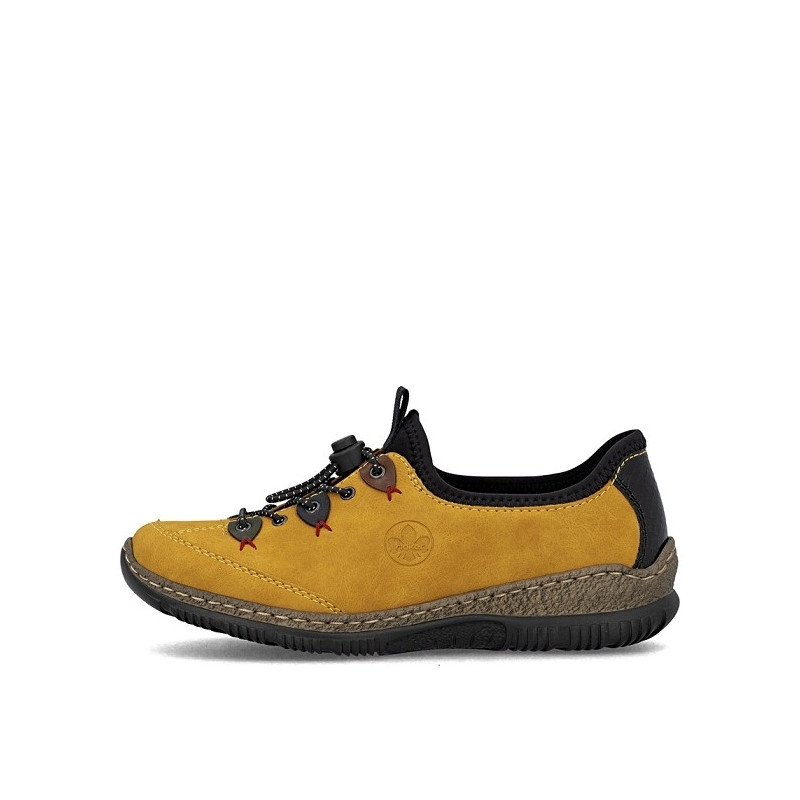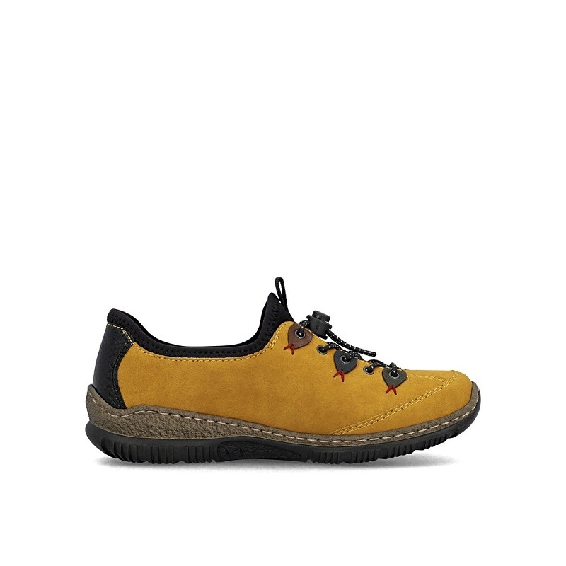Rieker tennis femme N3271 68 en textile jaune et noir.