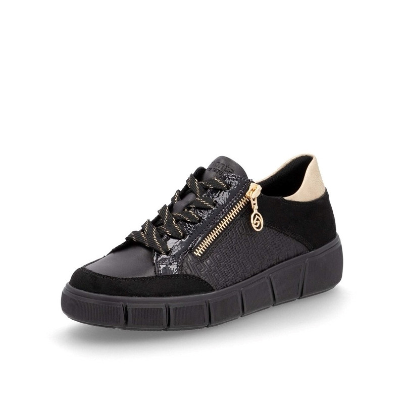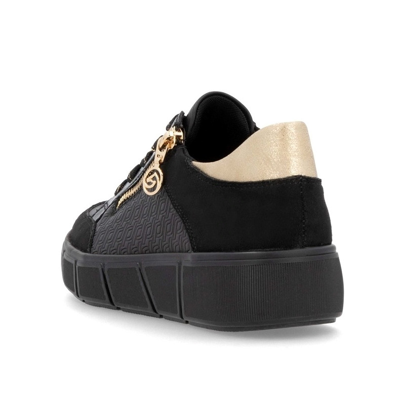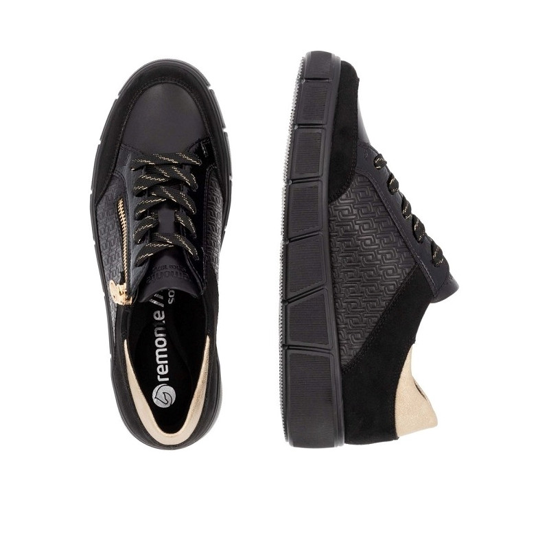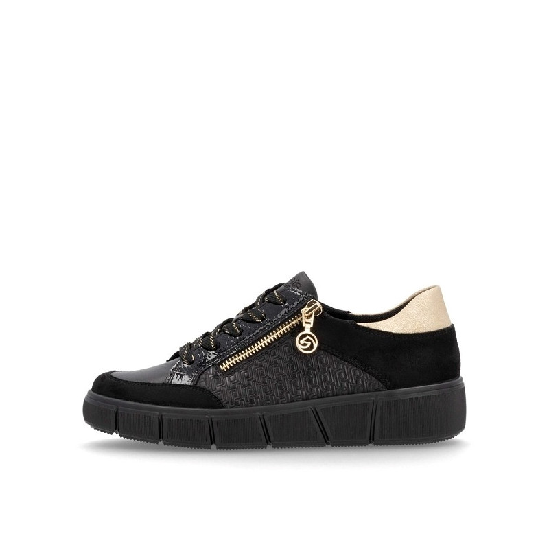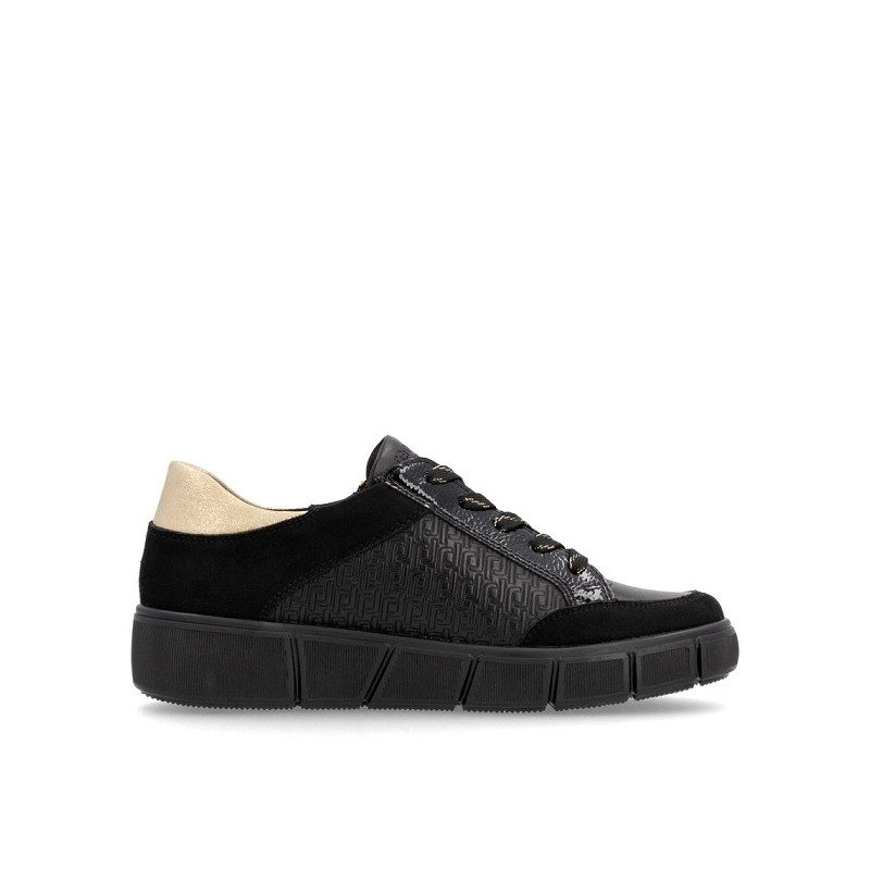 BASKET DE VILLE EN CUIR NOIR ET DORE / D1T00-03