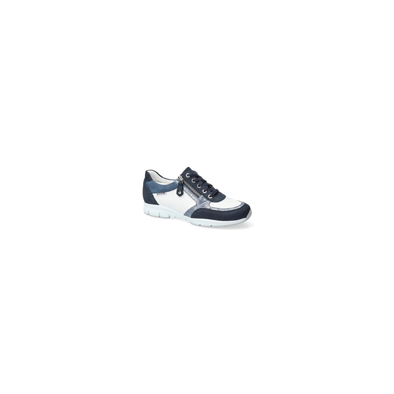 Ce modèle au look sportif pour femme est composé de cuir grainé lisse sur l'ensemble du pied avec des empiècements en cuir velours et en cuir effet métallisé.