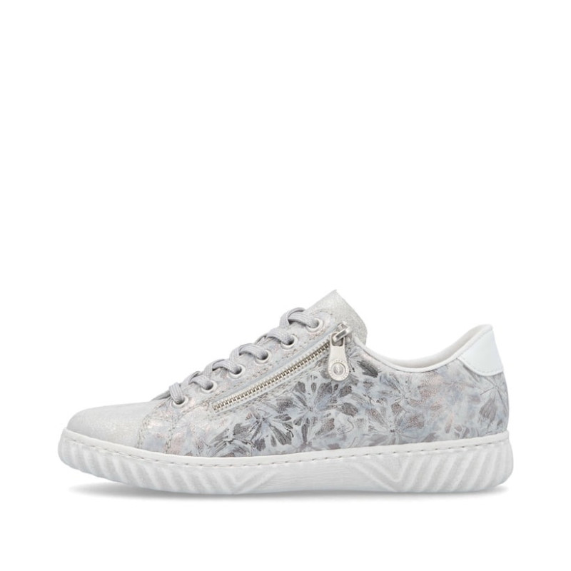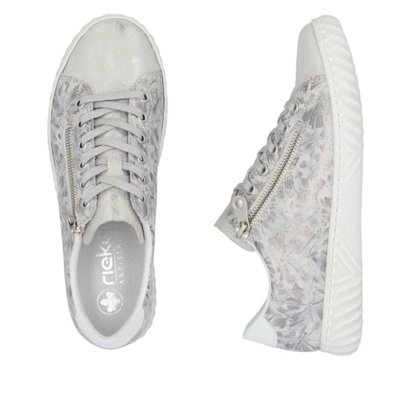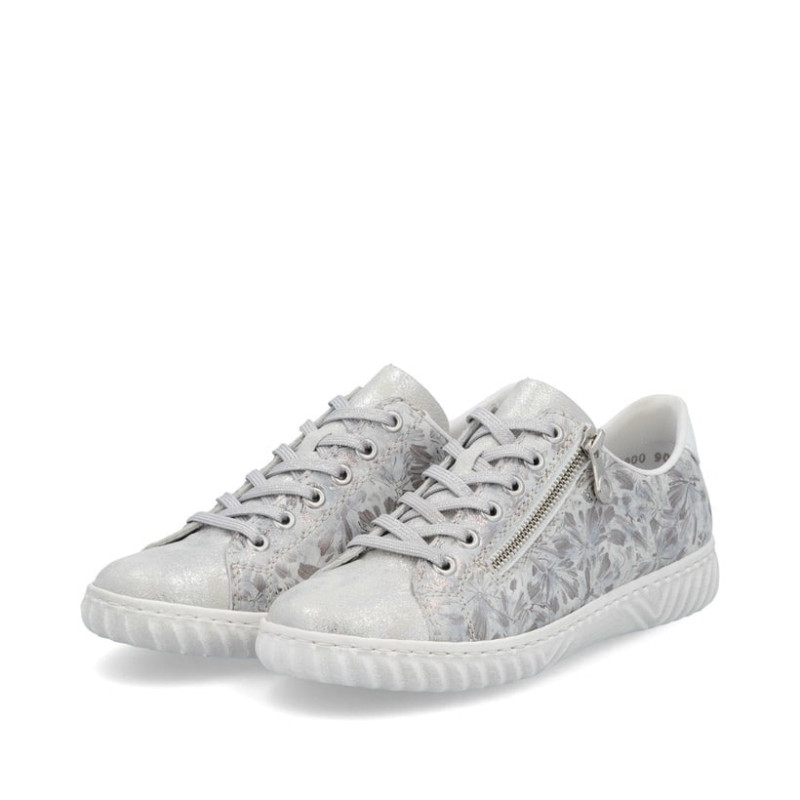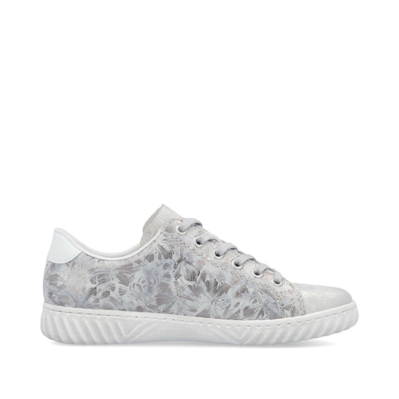 Un air de vacances pour vos pieds ! Ces baskets basses argentées Rieker pour femme N0900-90 sont un compagnon confortable.