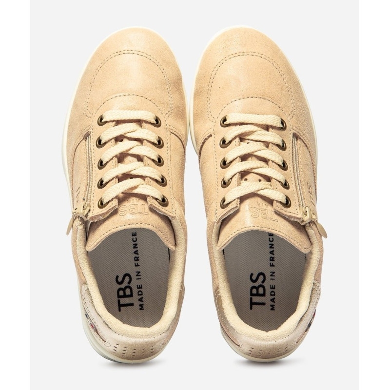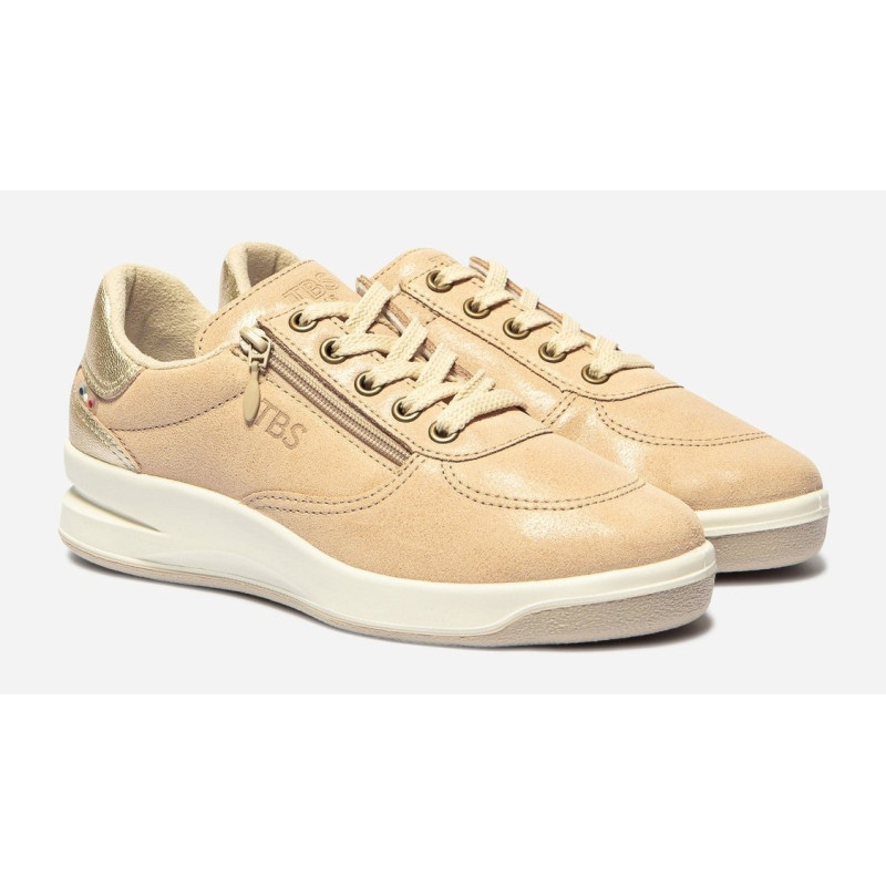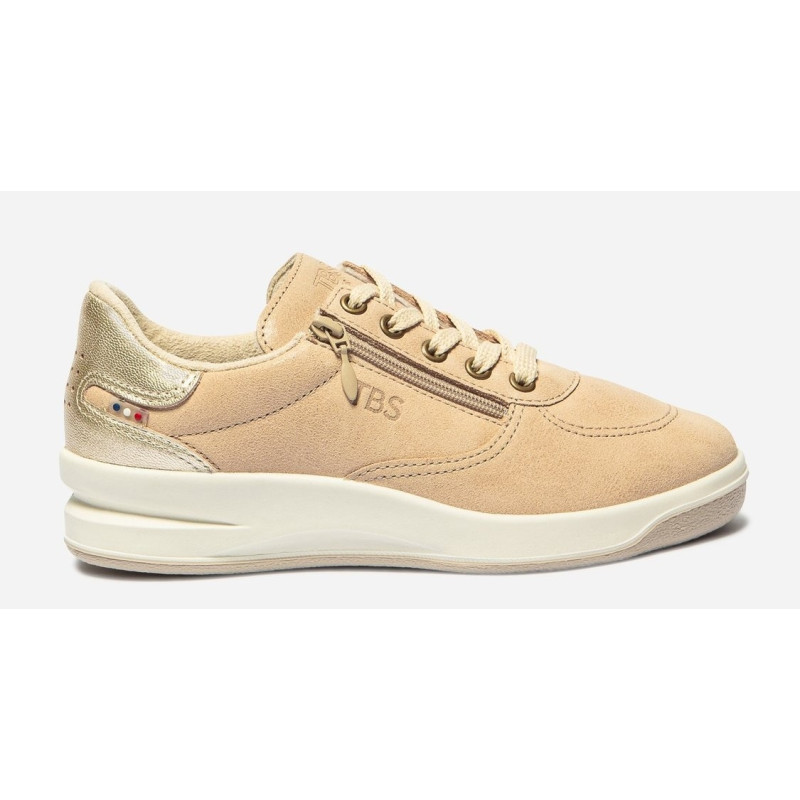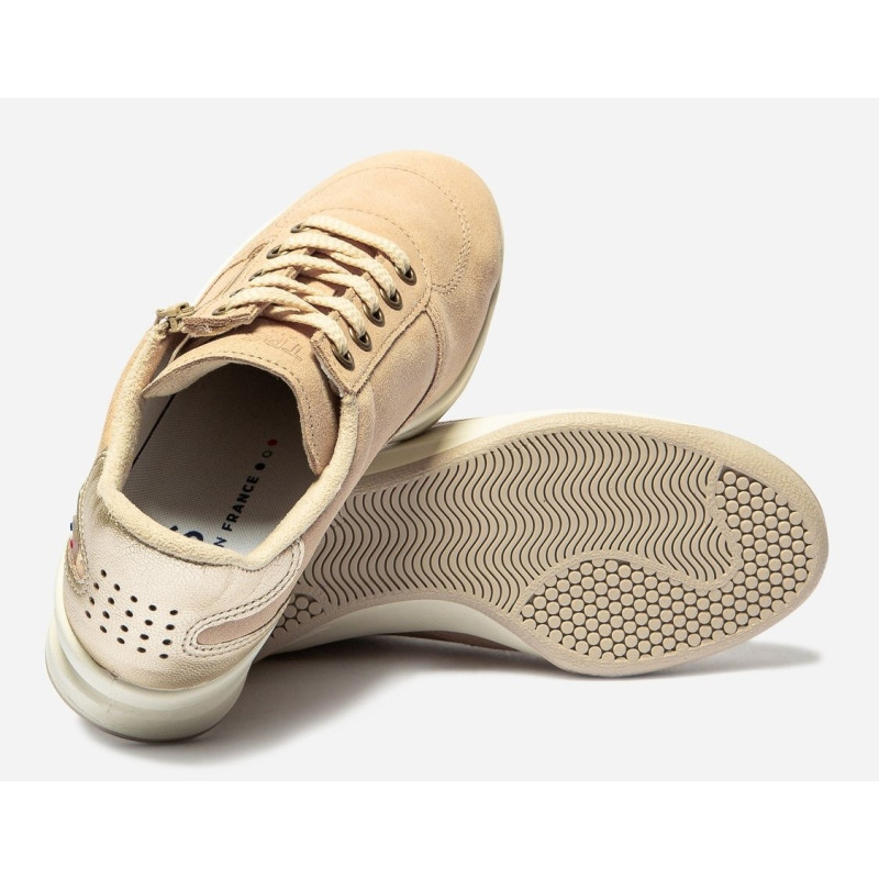 Tennis Femme Fabrication Française Cuir Velours Fermeture Lacets et Zip Beige BRAZIP2