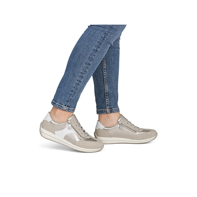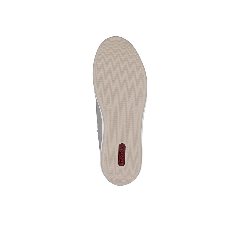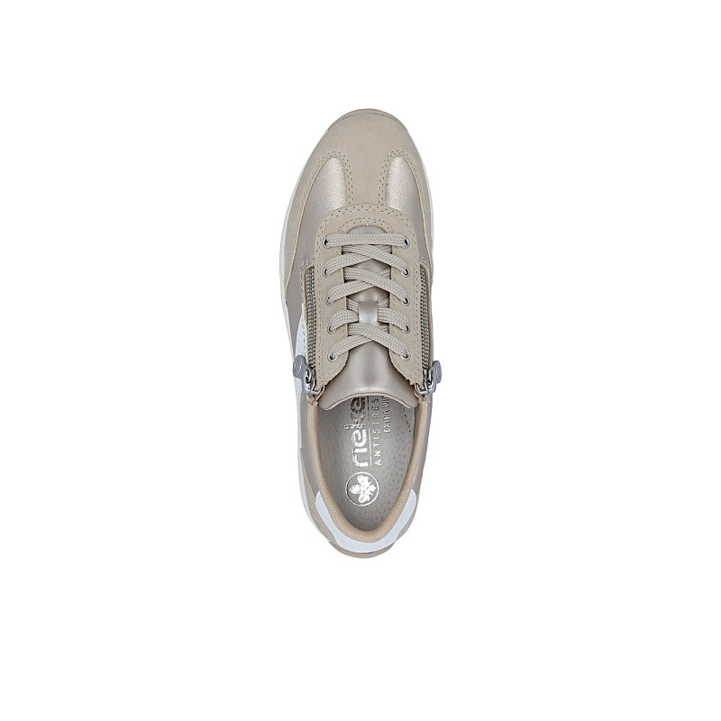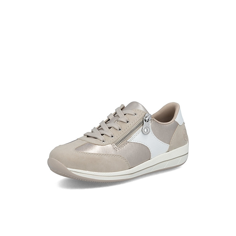 RIEKER N1103 90 est une tennis large femme en cuir enduit beige.