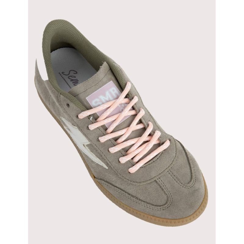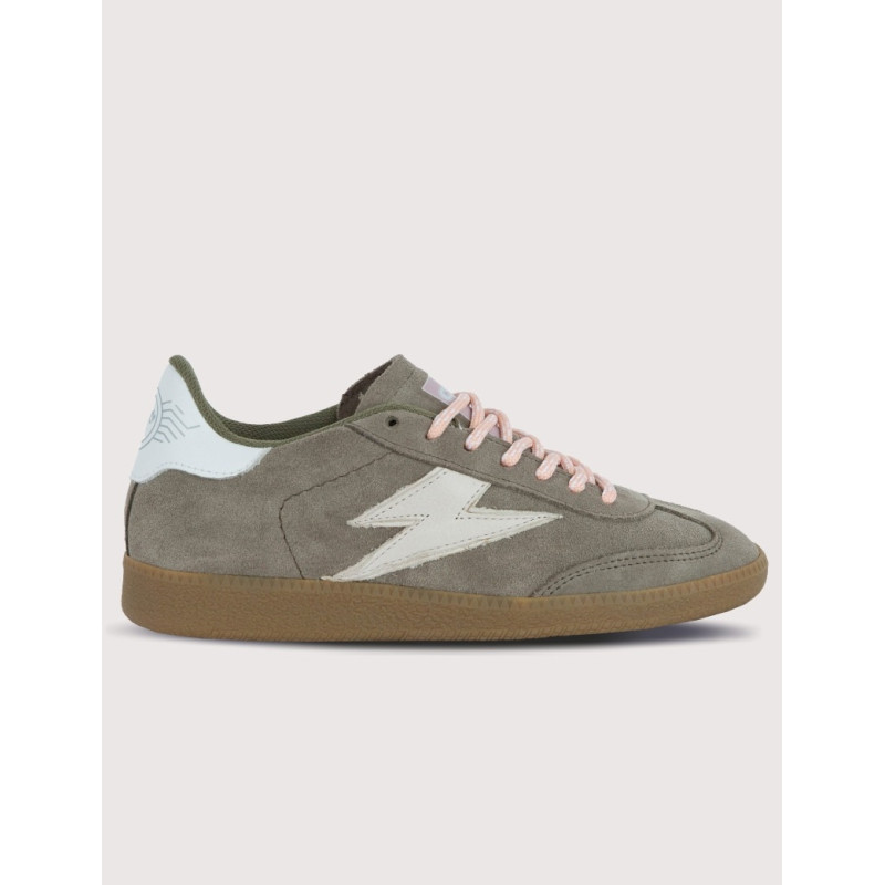 Sa tige en croûte de cuir vert kaki offre un rendu velouté et authentique, idéal pour vos looks décontractés.