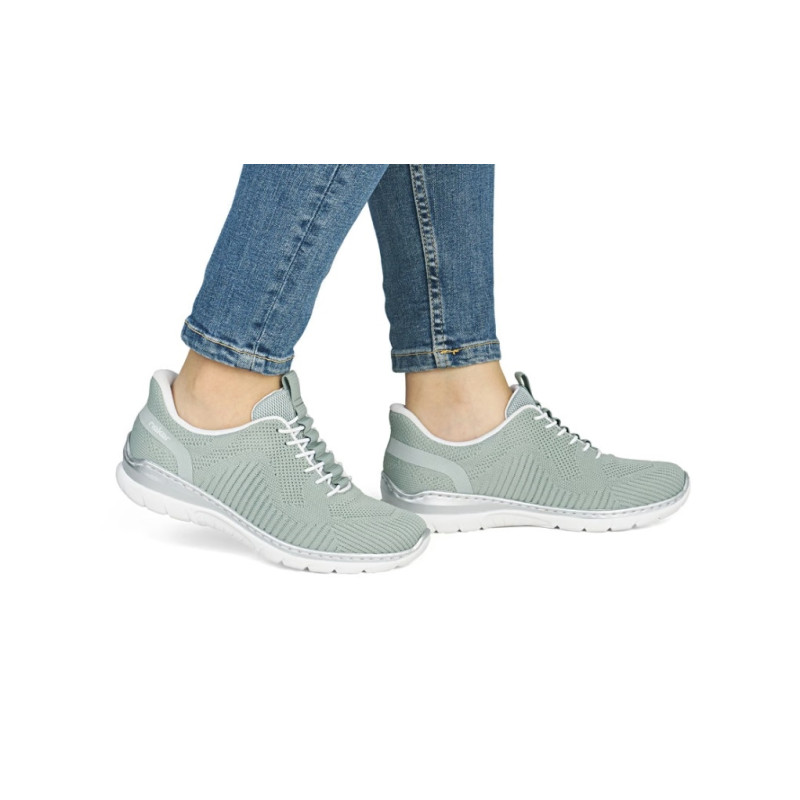 Ready2GO, prêt à faire feu ! Ces Rieker verts vous garantissent un look décontracté, jour après jour.