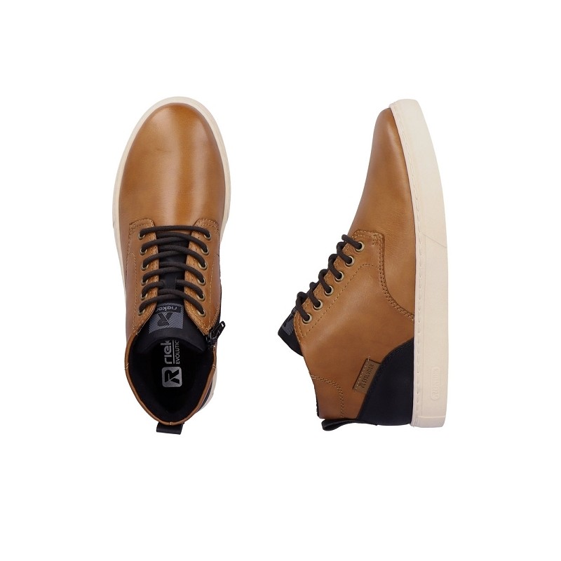 RIEKER R-Evolution U0762 24 est une tennis homme en cuir et textile marron.