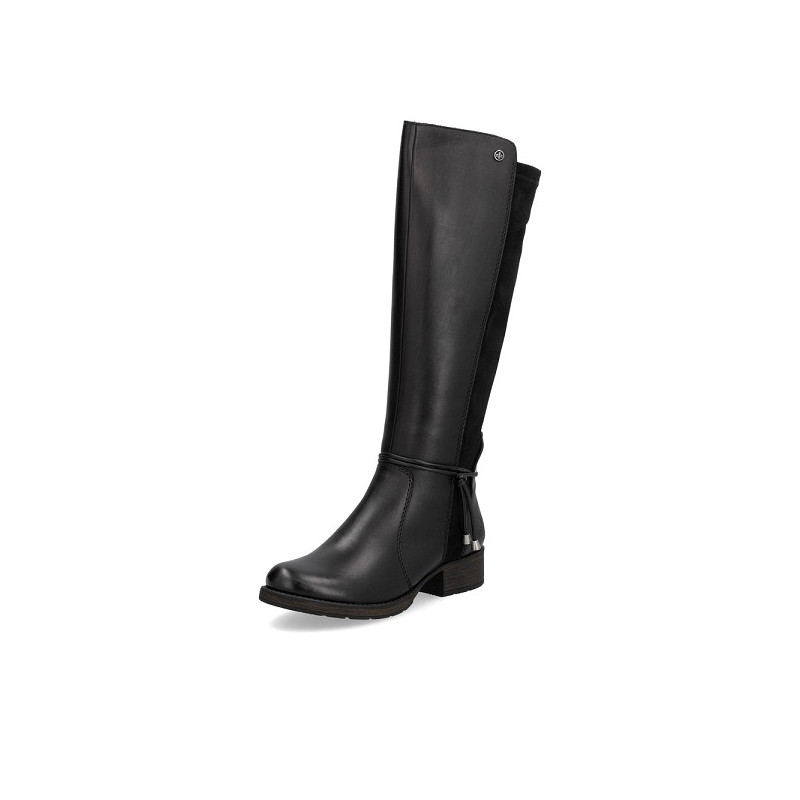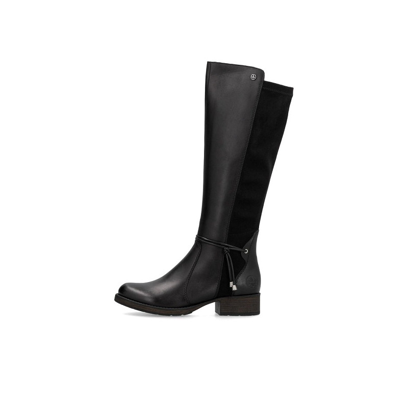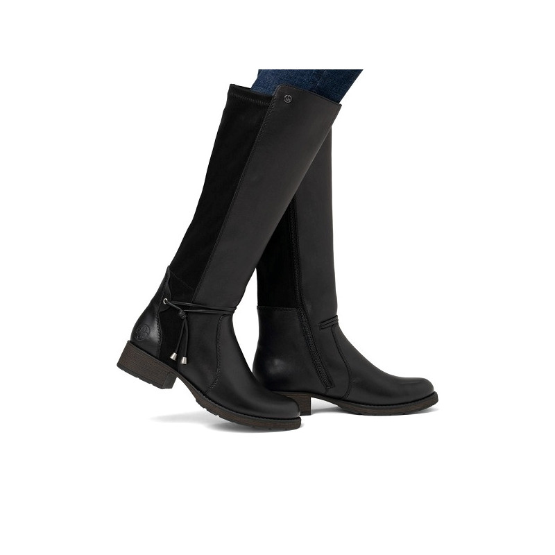 Botte femme Rieker Z9564 00 en cuir et textile noir.