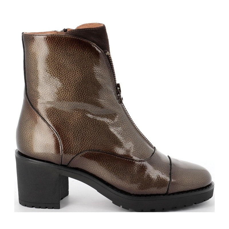 BOTTINE A TALON CUIR VERNIS MARRON