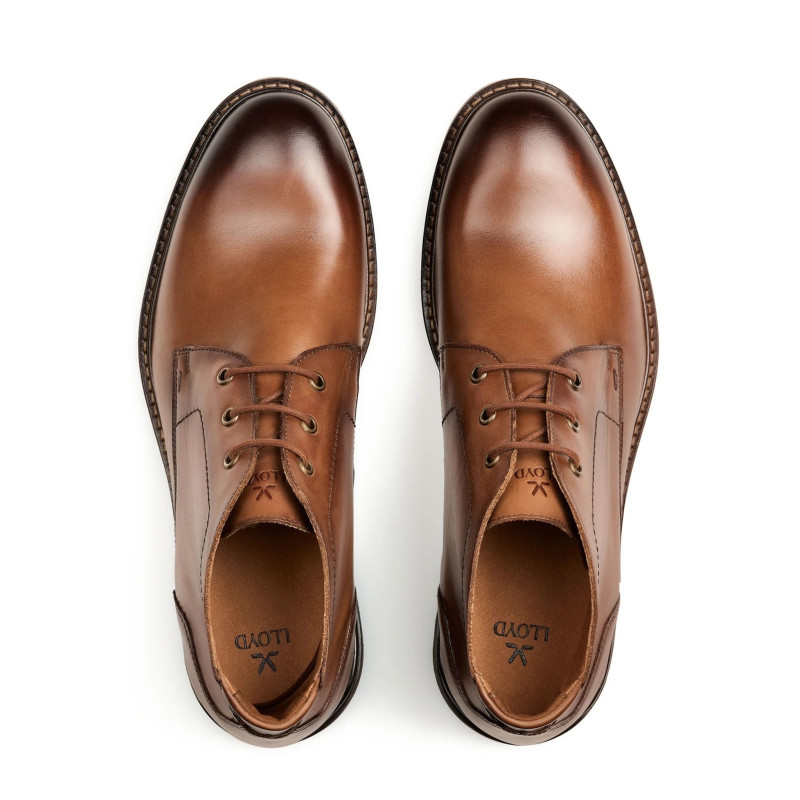 Découvrez l'élégance et la polyvalence de la LLOYD VIBE 325, une bottine qui impressionne par son cuir lisse marron de haute qualité.