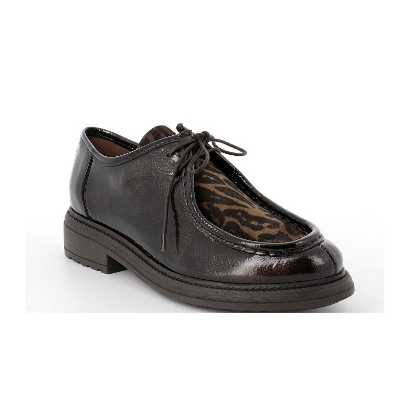 DERBIES VERNIS MARRON PLATEAU LEOPARD