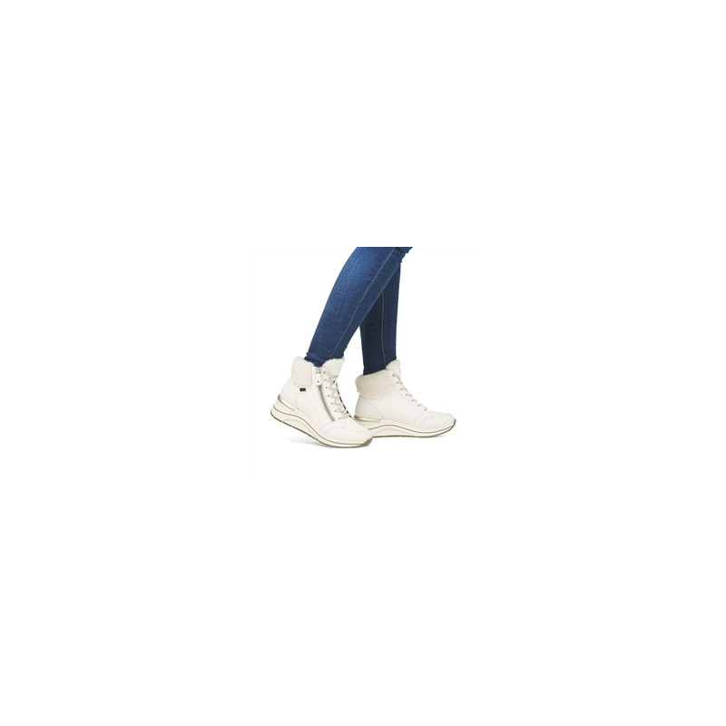Remonte D0T77 80 est une boots à lacet femme en cuir / textile blanc.