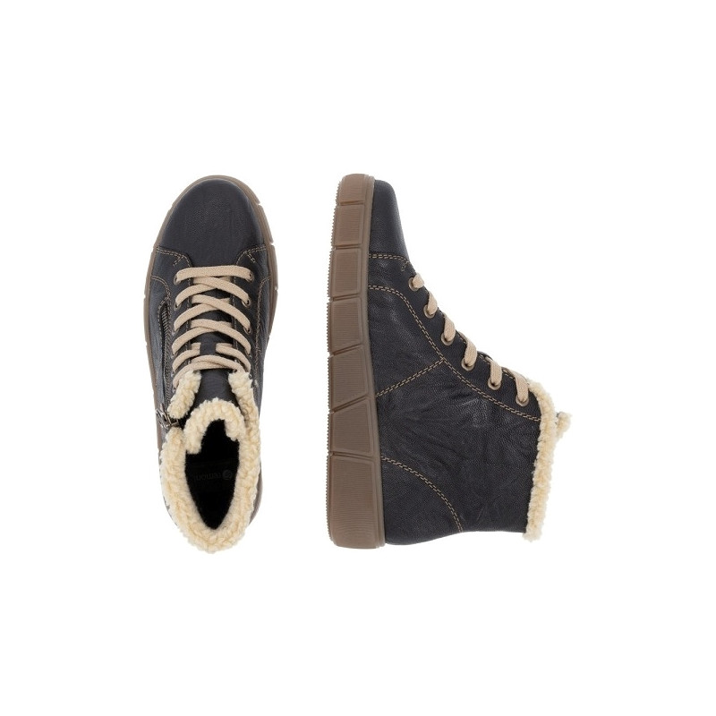 Ce modèle de tennis Remonte fourré est doté d'une semelle amovible soft et d'une membrane imperméable Remonte Tex doublée laine.