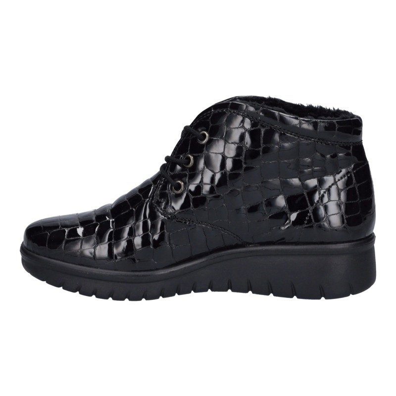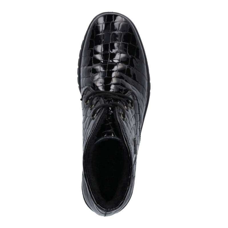 Découvre le modèle Calais 88, une chaussure basse qui allie élégance et confort. Conçue par JOSEF SEIBEL, cette chaussure en cuir verni noir offre un look sophistiqué grâce à son design crocodile unique. Les lacets assurent un ajustement parfait, te permettant de te sentir à l'aise tout au long de la journée.