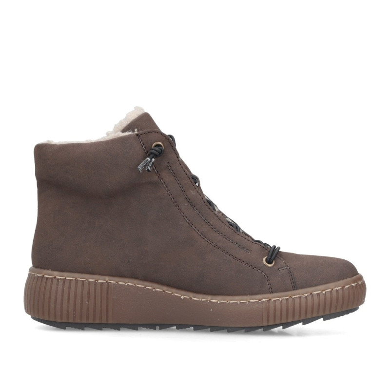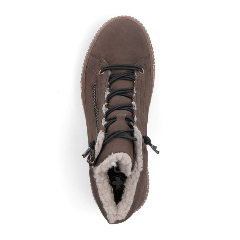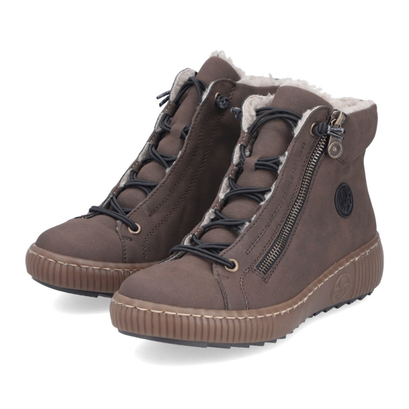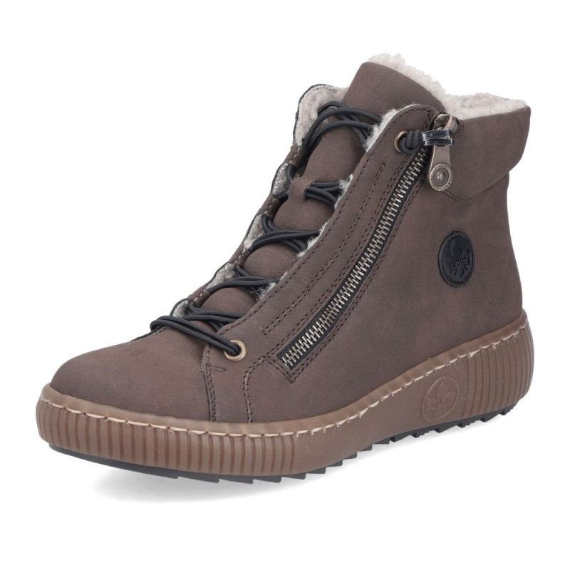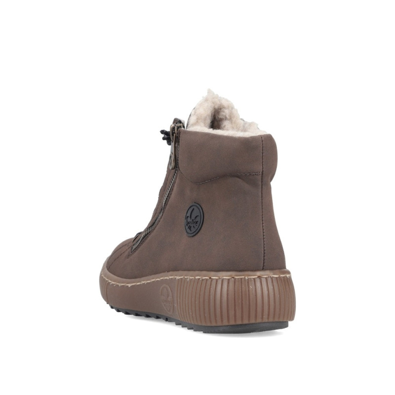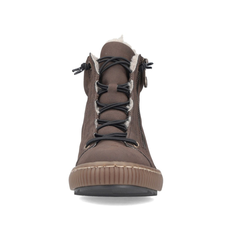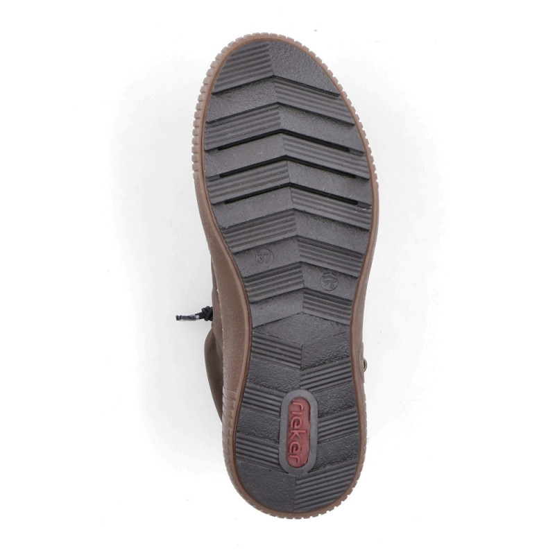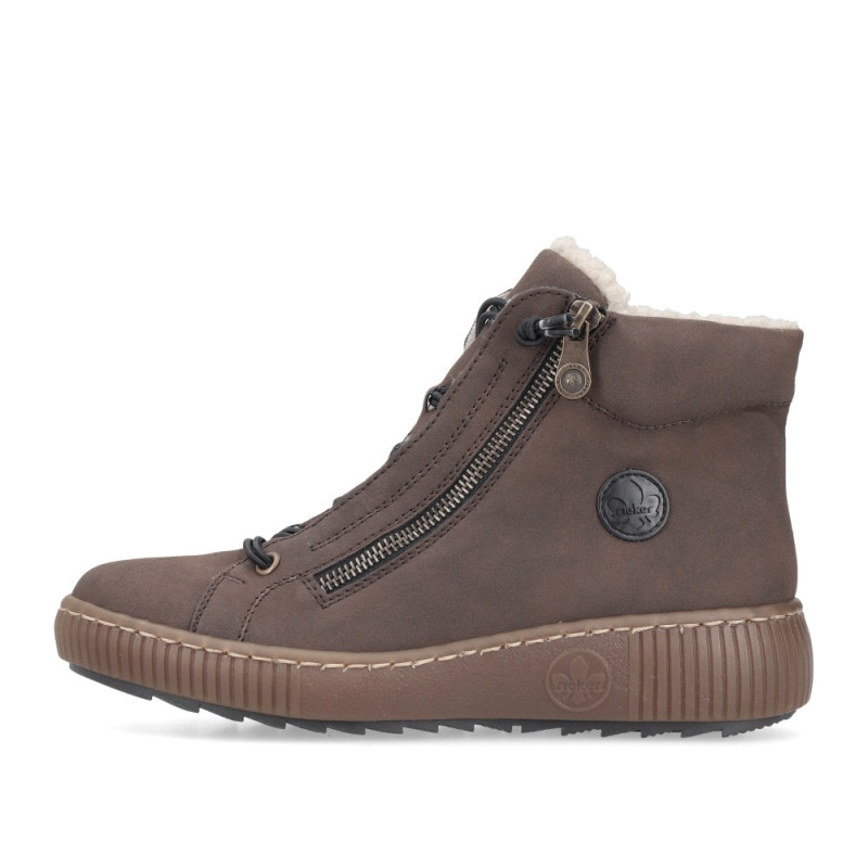 Ces bottines RIEKER attirent le regard dès le premier coup d'œil grâce à leur tige marron travaillée avec précision. Leur design impressionnant est rehaussé par le logo de la marque appliqué en contraste. L'association pratique d'une fermeture éclair sur le cou-de-pied et d'un laçage permet non seulement un enfilage facile et rapide, mais aussi un ajustement précis à la forme du pied. La doublure chaude et la semelle intérieure amovible confortable assurent un confort optimal. Une semelle amortissante assure stabilité et confort sur tous types de surfaces. Ce modèle est un excellent choix pour les femmes recherchant style, praticité et confort dans une seule paire.
