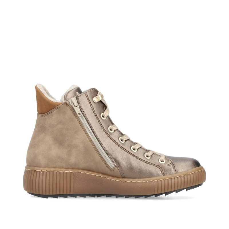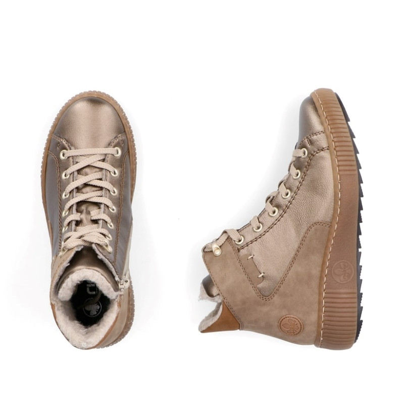Un sentiment de vacances pour les pieds ! Avec ces bottes à lacets Rieker bronze Z6614-90 pour femme, le froid n'est plus un problème.