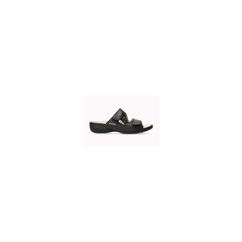 MOBILS GEVA | Femme Sandales Noir Cuir Lisse.
