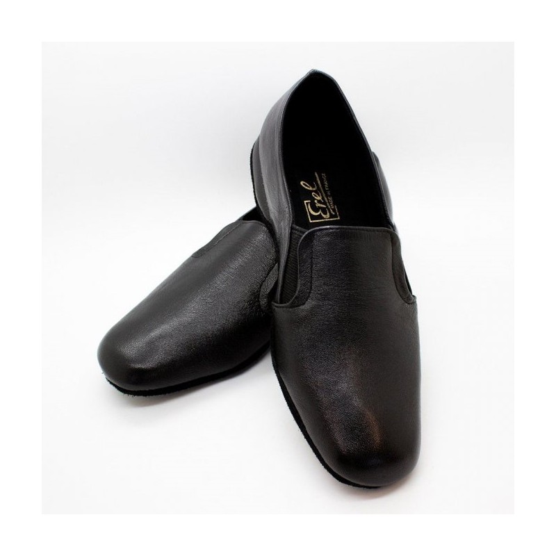 CHAUSSON GILBERT CUIR CHEVRE NOIR SEMELLE PEAU