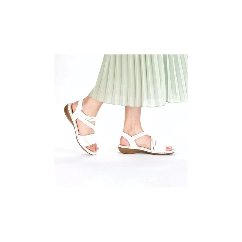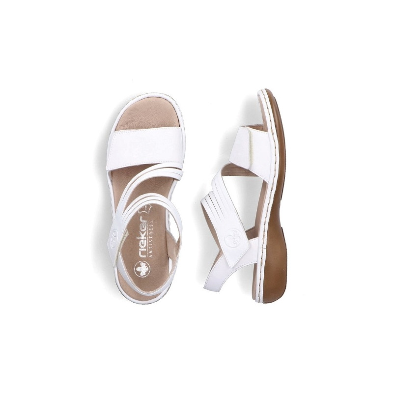 Rieker, la marque au trés bon rapport qualité prix! RIEKER 65964 80 est une sandale femme cuir blanc.