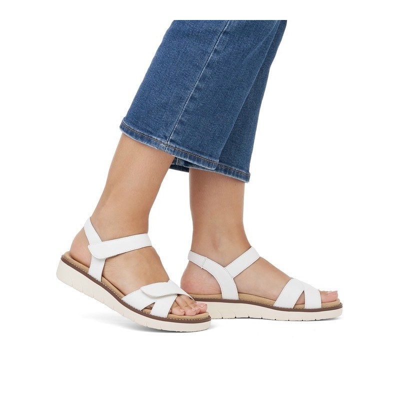 Voyagez avec style ! Ces sandales blanches à brides D2049-83 en cuir lisse, ornées de lanières, raviront les femmes soucieuses de leur look.