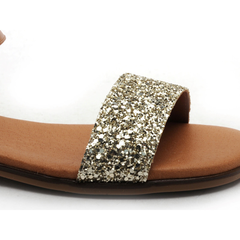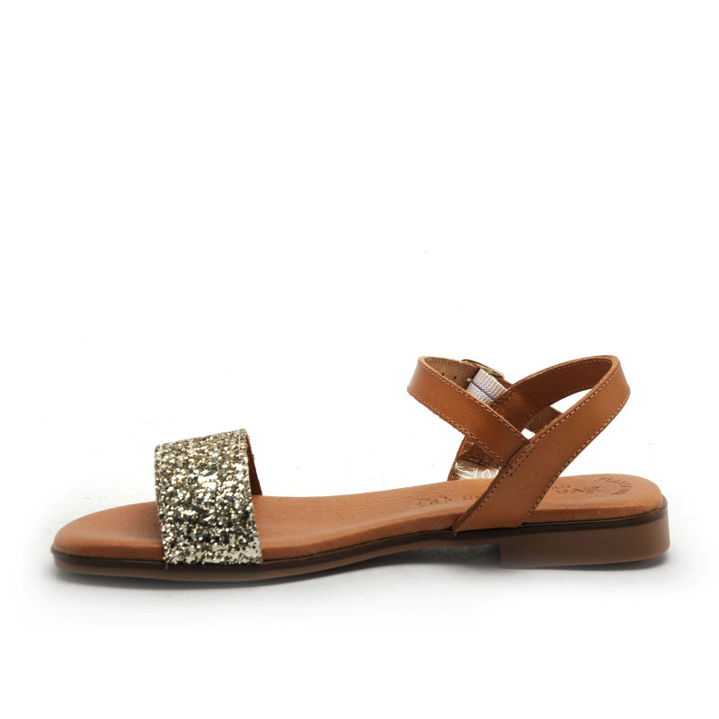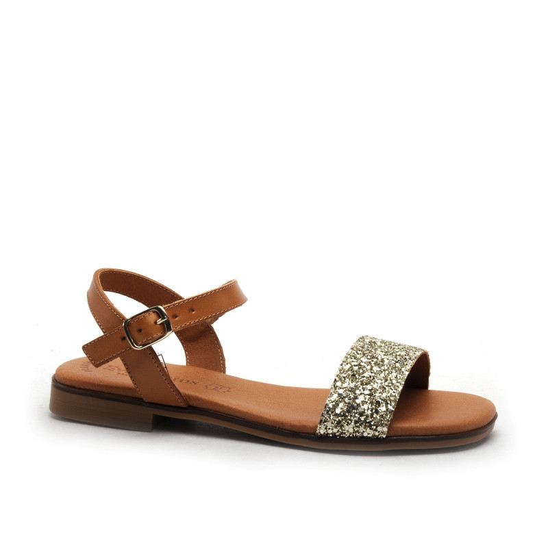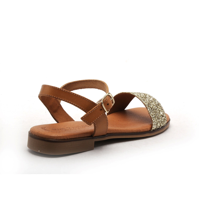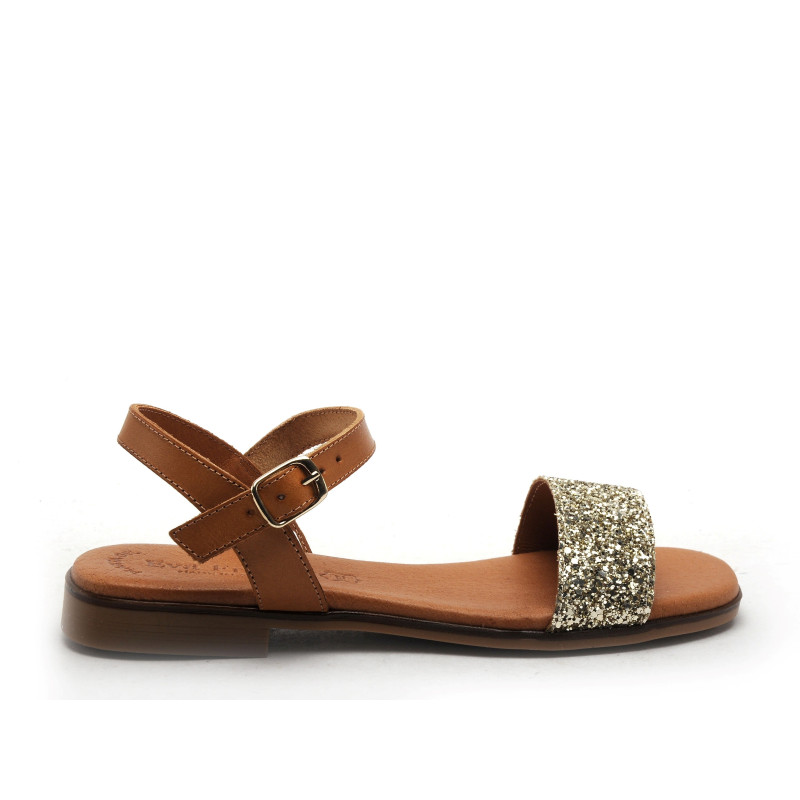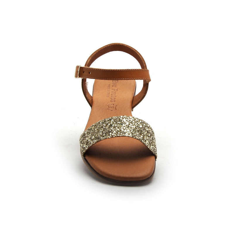Pour briller cet été, voici de belles sandales en cuir marron avec paillettes dorées Eva Frutos 3090 !