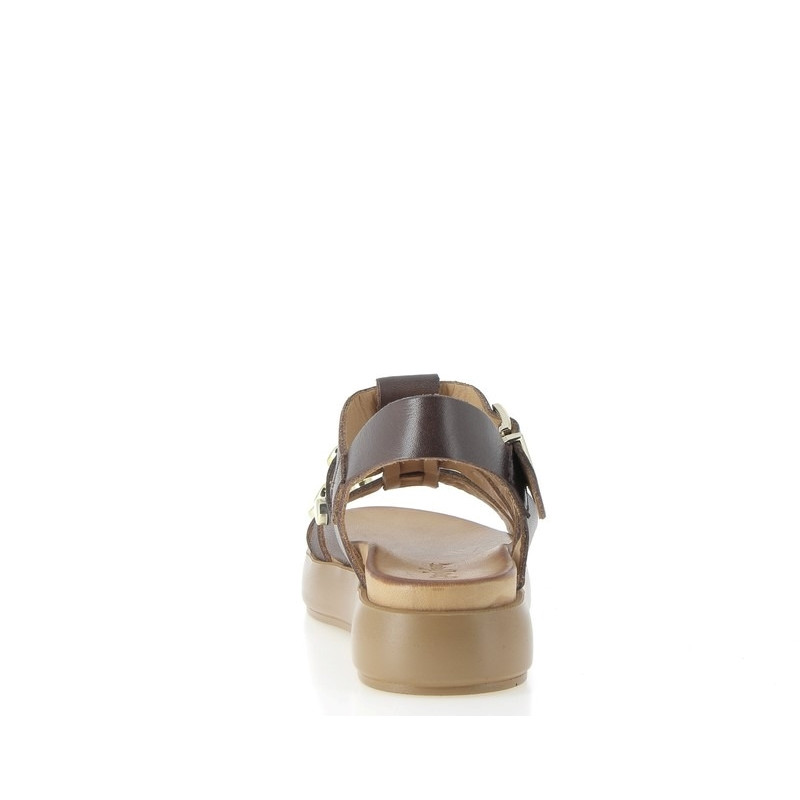 Leur cuir souple aux nuances café met en valeur le pied, tandis que les brides croisées sur l’avant dessinent une ligne féminine et moderne.