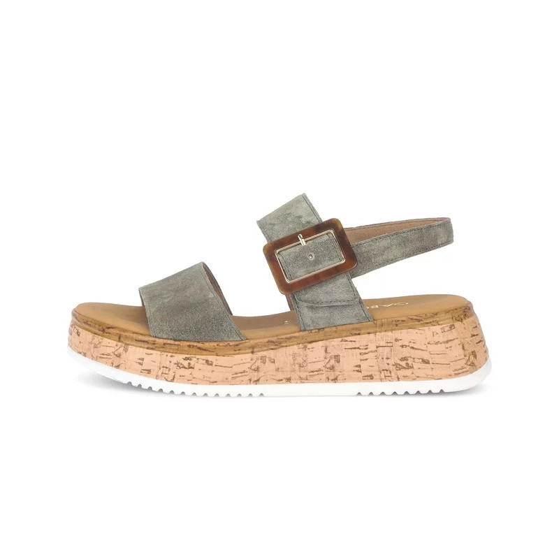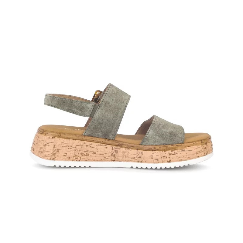 Sa teinte vert kaki et sa semelle effet liège en font un modèle tendance, idéal pour la saison estivale.