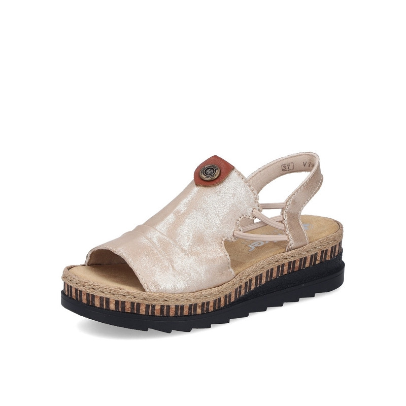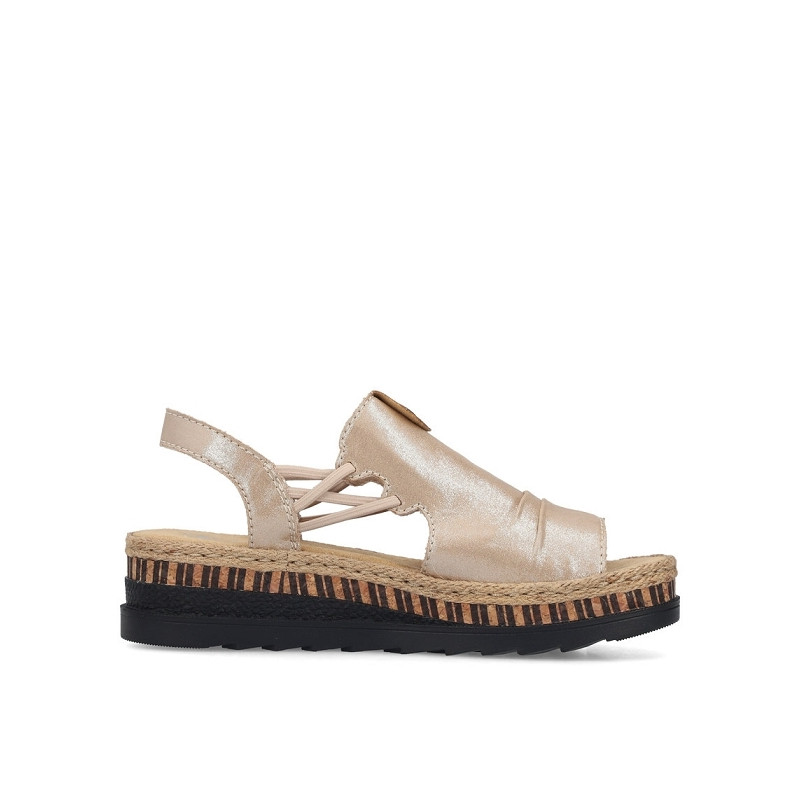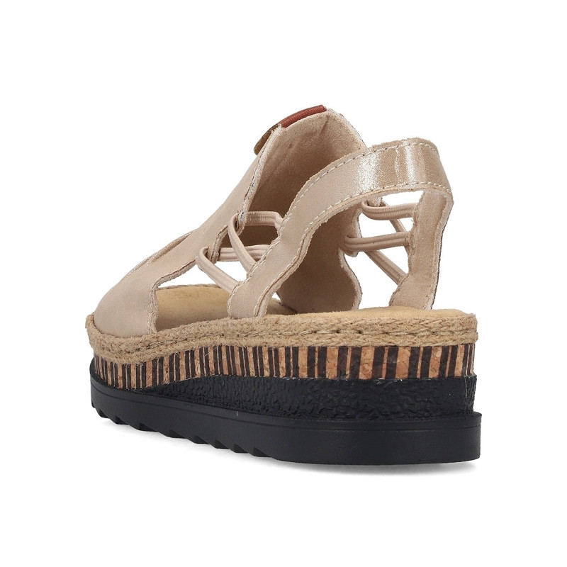 Attention, alerte tendance ! Ces sandales compensées Rieker beiges convainquent par leur véritable confort pour les pieds.